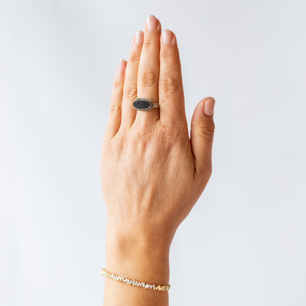 Ananda Khalsa | Oval Black Drusy Ring with Two Diamond Dots
