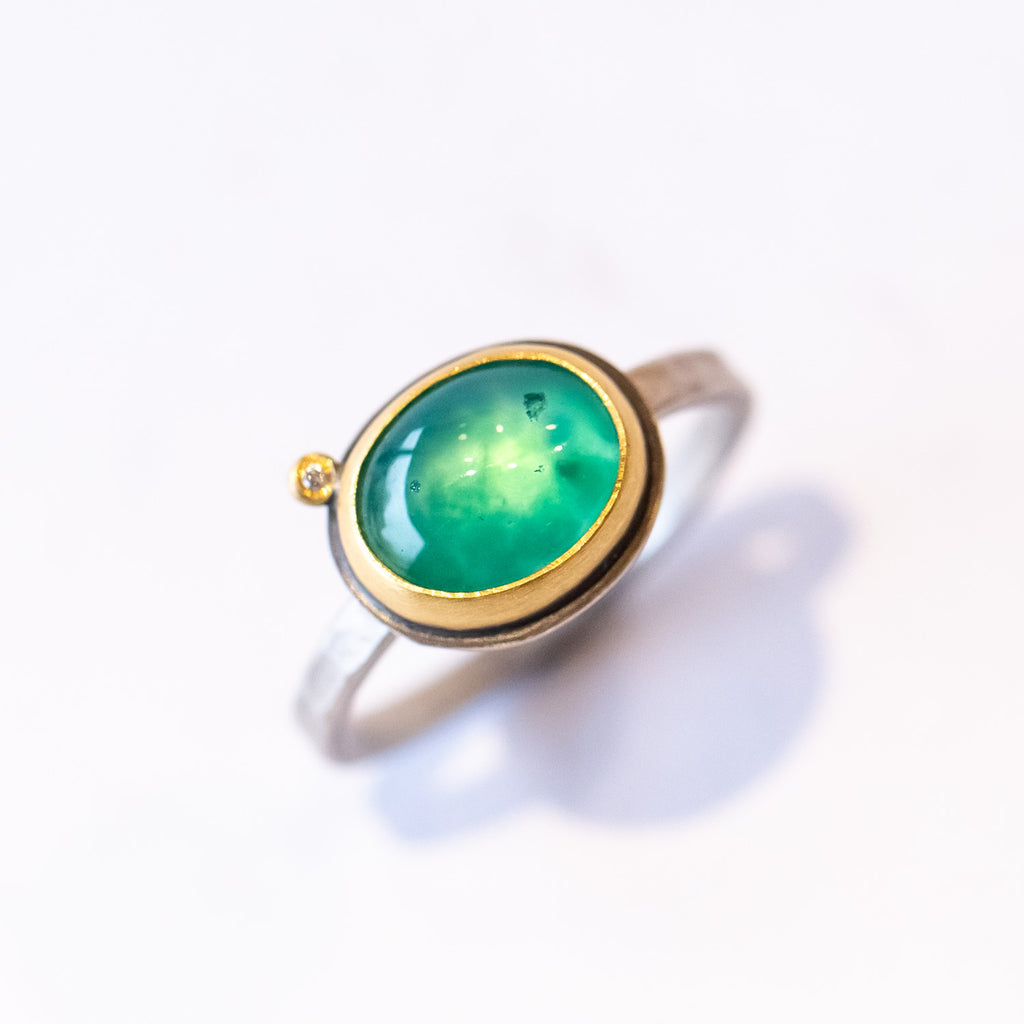 Ananda Khalsa | Oval Gem Silica Ring with Diamond