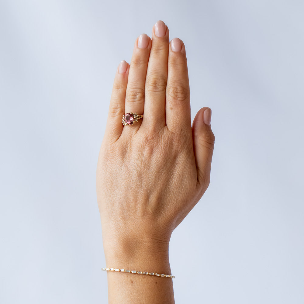 Ruth Tomlinson | Pink Tourmaline and Diamond Ring with Granules