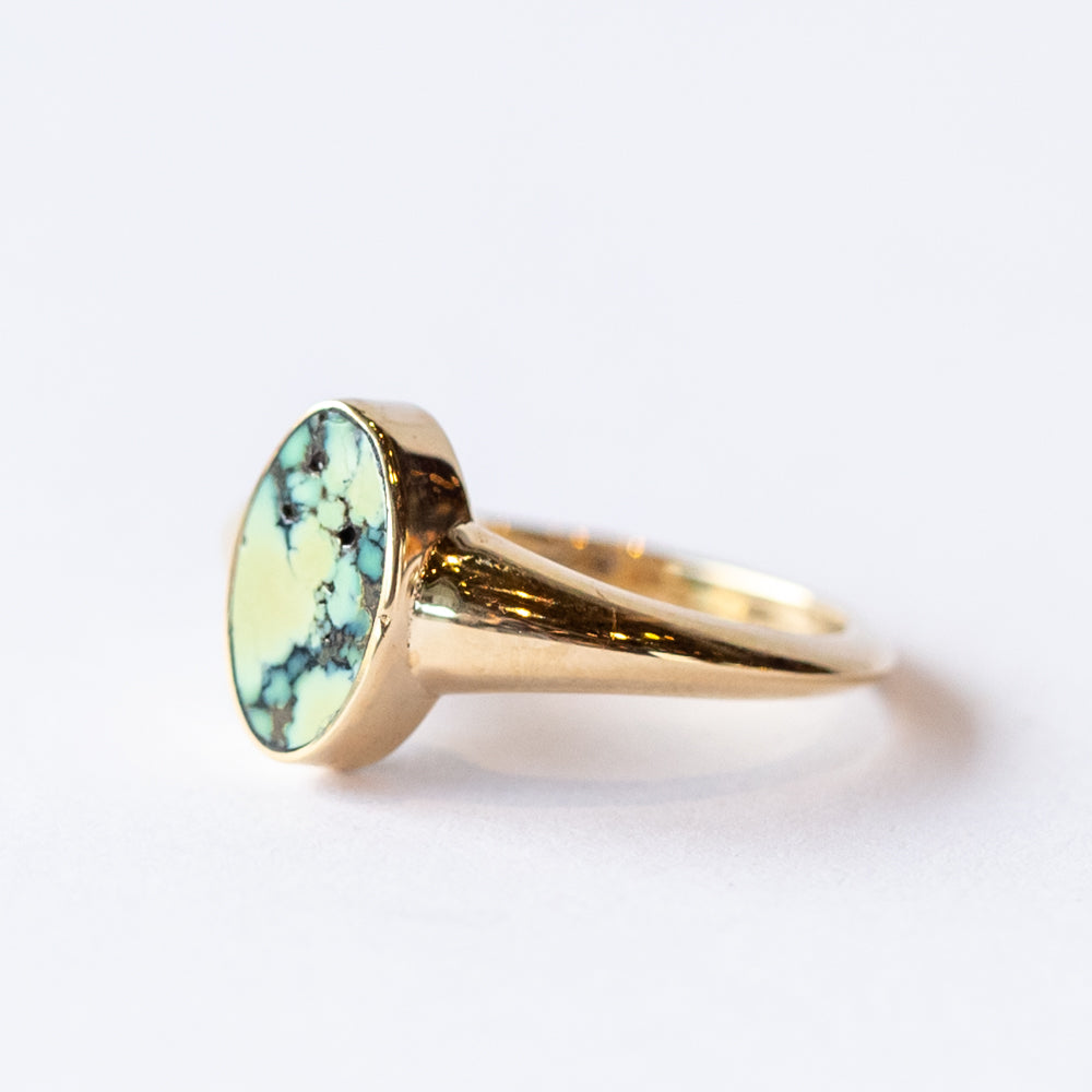 Minimalist in form but rich in feeling, the Polaris is ideal as a signature everyday ring or a statement piece in a curated stack. For those seeking a variscite signet ring, a minimal gold ring, or a modern alternative to traditional gemstone jewelry, Polaris leads the way.