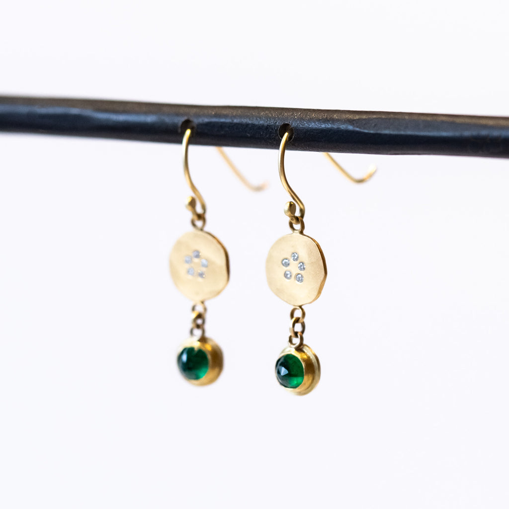 Ananda Khalsa | Emerald and Diamond Drop Disc Earrings