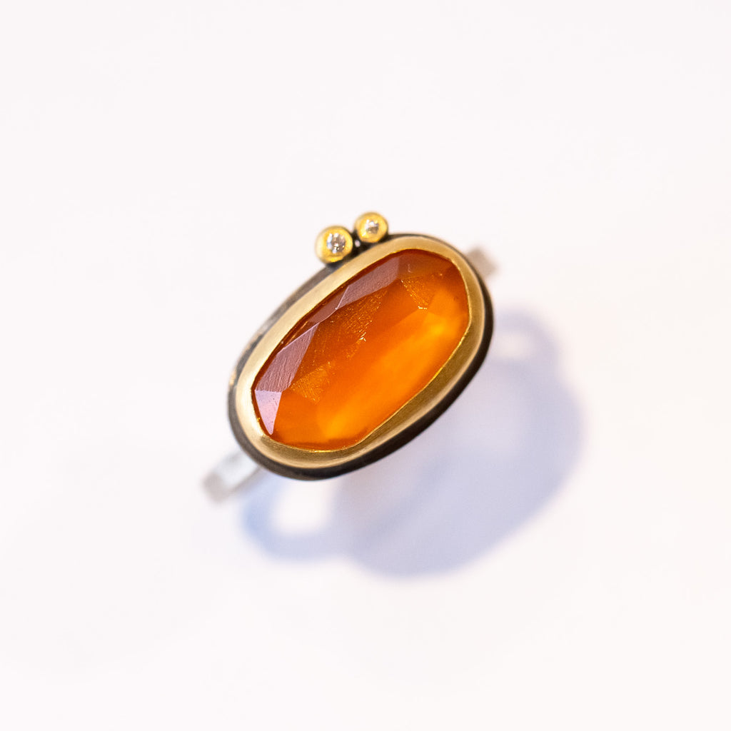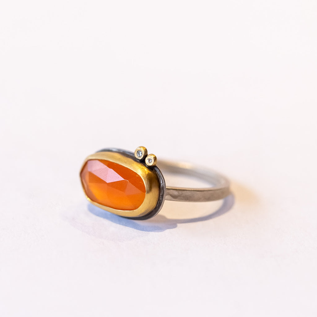 Ananda Khalsa | Carnelian Ring with Diamonds