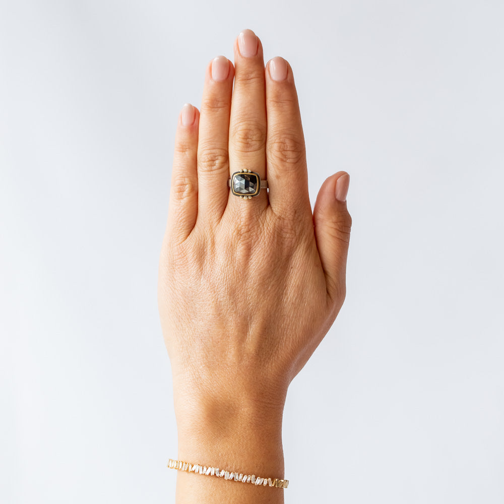Ananda Khalsa | Hematite Ring with Six Diamond Dots