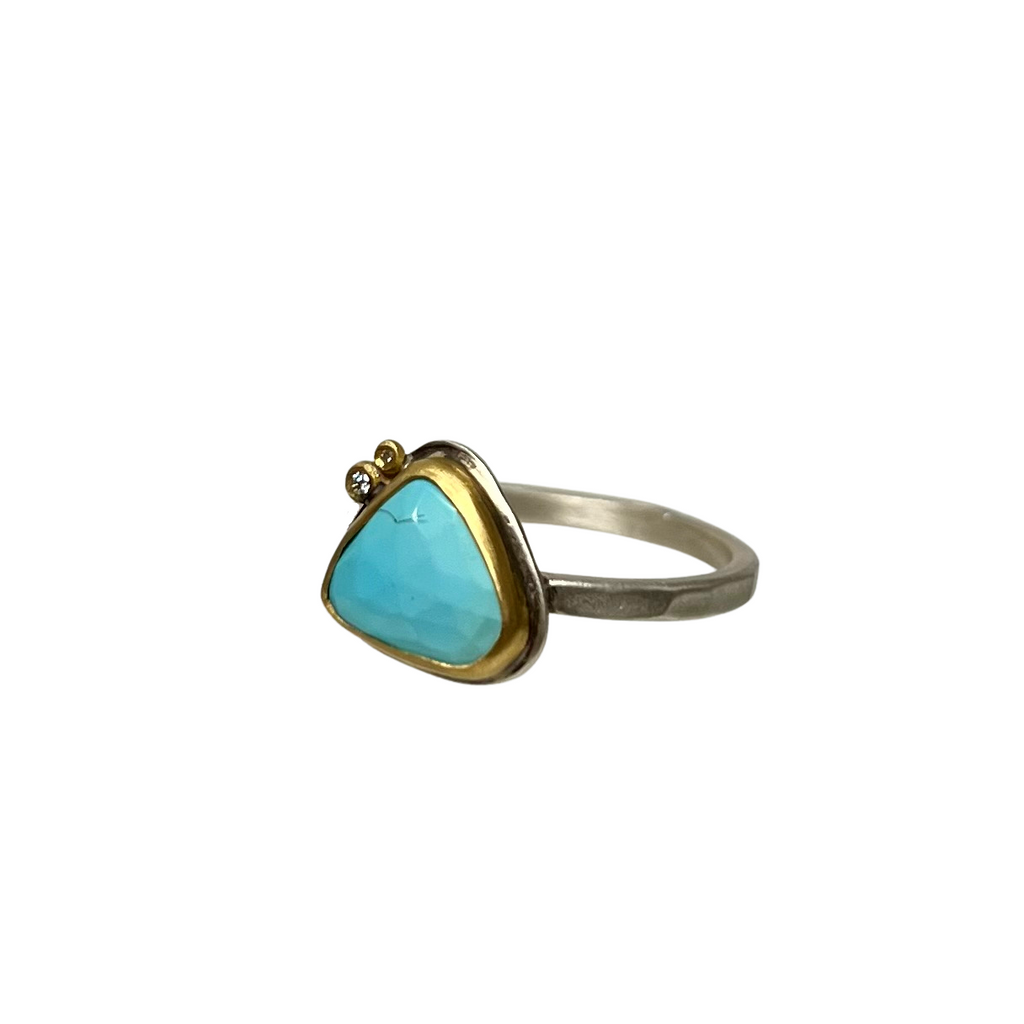 Ananda Khalsa | Turquoise Ring with Two Diamond Dots