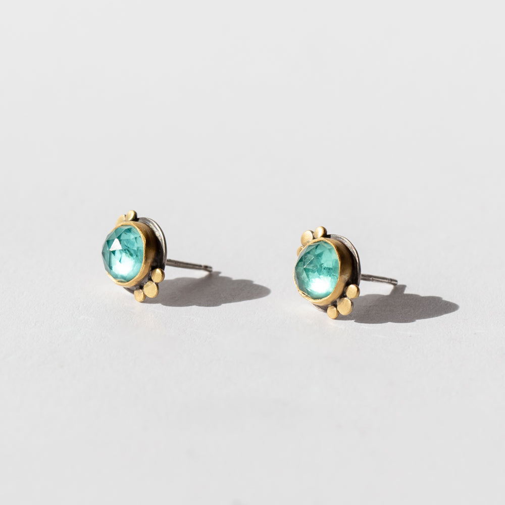 Ananda Khalsa | Round Rose Cut Apatite Stud Earrings