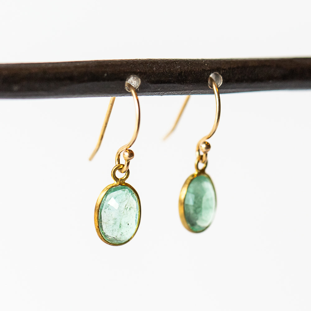 Margaret Solow | Small Faceted Oval Emerald Drop Earrings