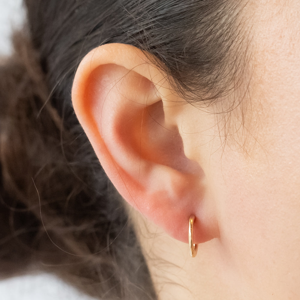 The soft, organic finish on these petite gold hoop earrings makes them shine in a sea of basics. They basically glow. And the size? As far as gold huggies go, it's pretty much perfect. Great for daily wear, whether alone or layered with others across multiple piercings. If you're looking for classic gold earrings for women or a jewelry gift that they'll wear nonstop, these are a perfect pick.