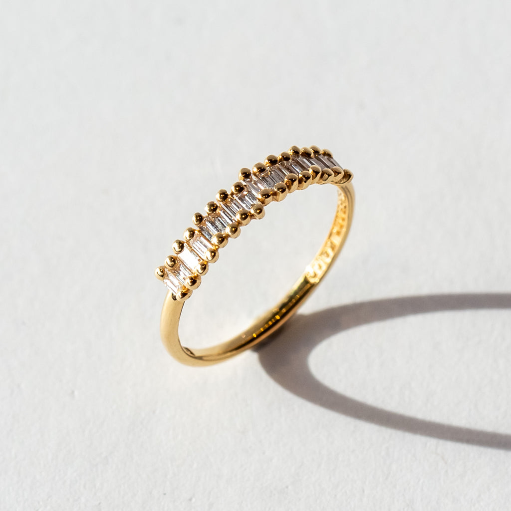 Meet your new stacking essential. This 18k gold diamond band is anything but basic, with baguette-cut diamonds set in Suzanne Kalan’s signature staggered style—because perfect symmetry is so last season. Whether you’re layering it up or letting it shine solo, this piece adds just the right amount of edge to your everyday sparkle. A fresh take on a classic, it’s a diamond stacking ring that refuses to blend in.