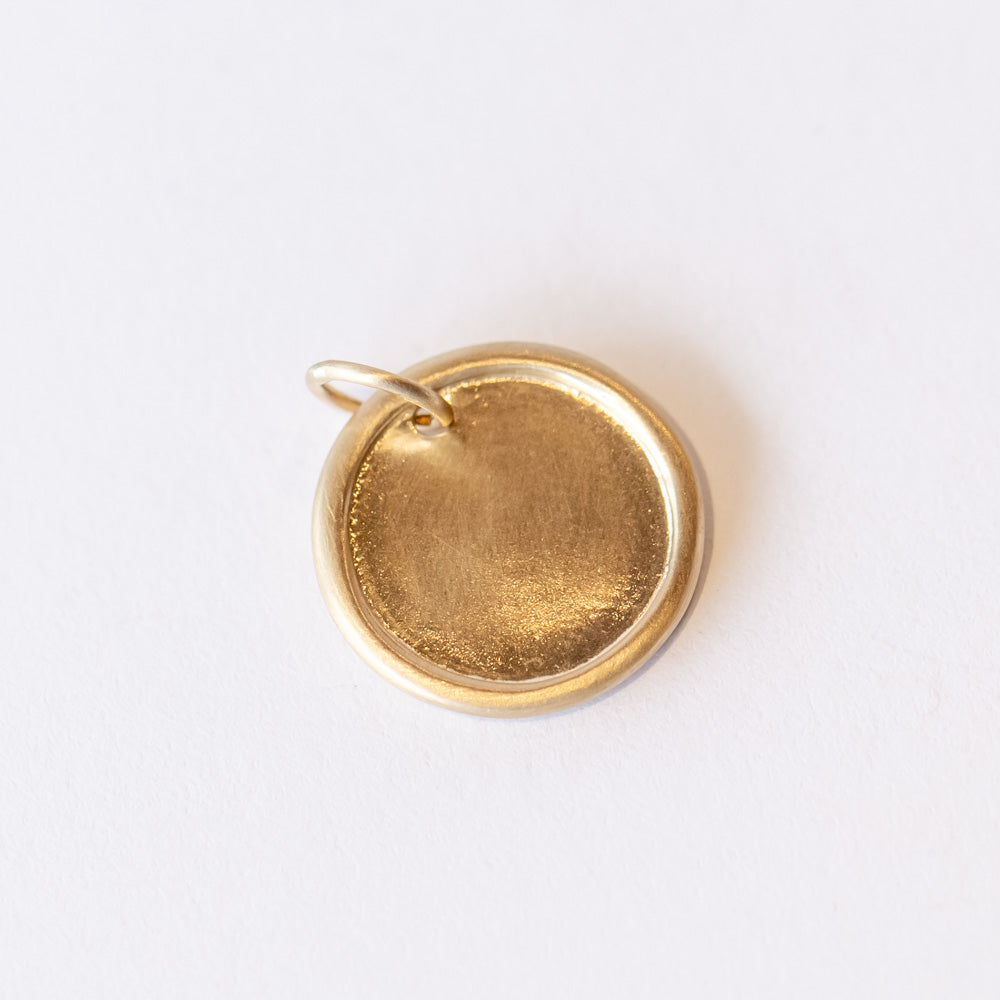With its delicate design and understated elegance, the Tiny Diamond Disc Charm is a must-have. Crafted from matte 14k yellow gold, this charm features a raised edge that adds dimension, while a single tiny flush-set diamond accent brings a touch of subtle sparkle. Perfect for layering or wearing solo, it’s a timeless piece that complements any jewelry collection with its minimalist beauty and refined detail.