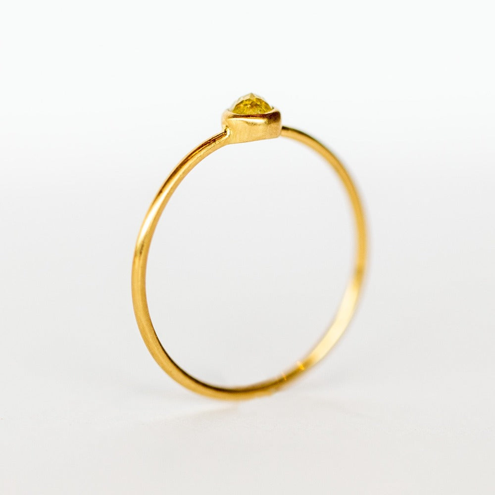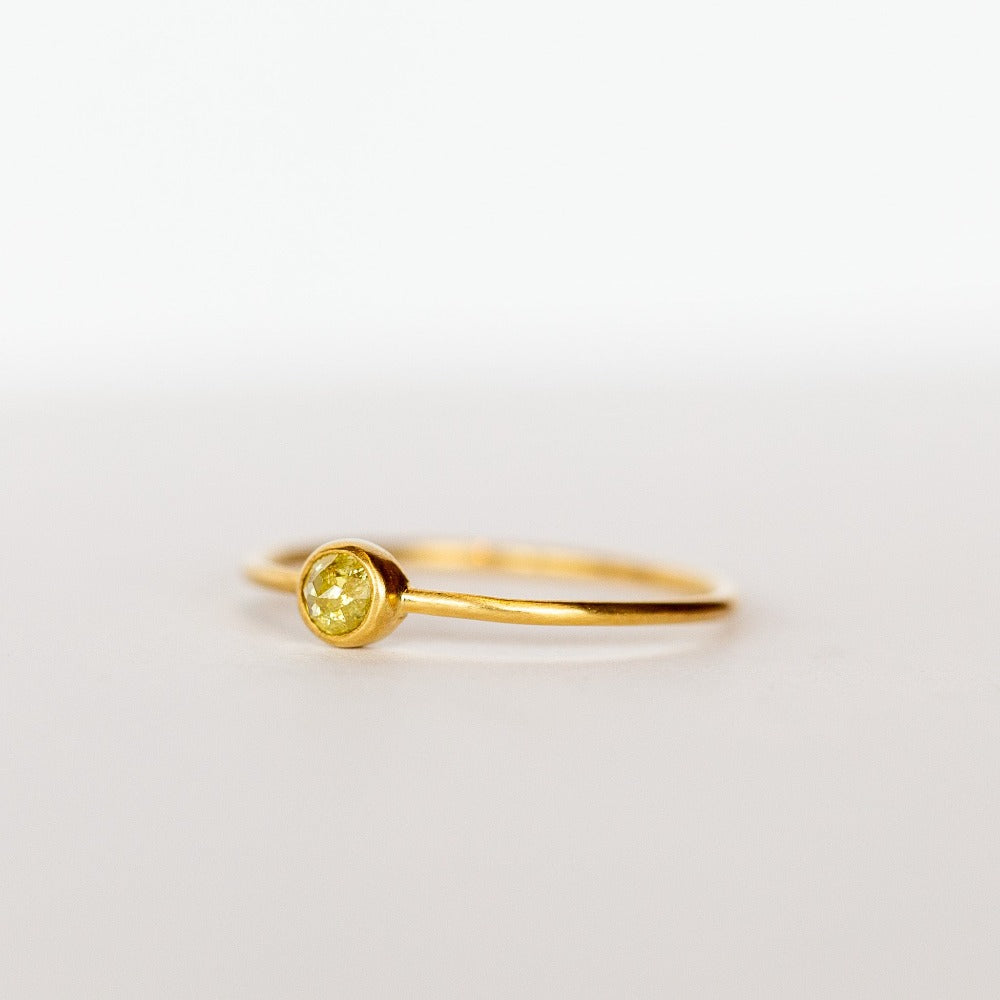 Tiny yellow diamond ring bezel set in 18k yellow gold