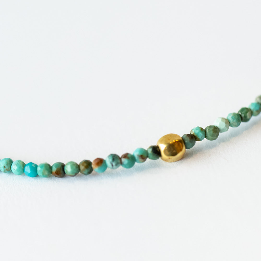 Beaded turquoise bracelet set with faceted gold bead in center