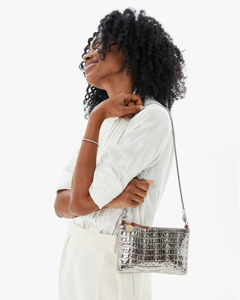 Clare V. | Wallet Clutch with Tabs, Metallic Silver Croco