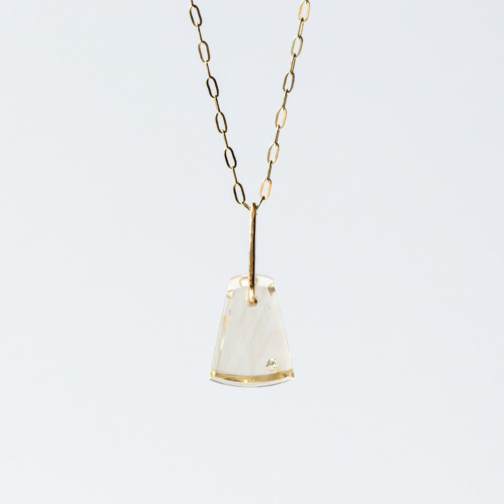 Light up your look with the Yellow Sunstone and Diamond Mini Chunk Charm. This charm is a delicate burst of golden energy, with the sunstone’s faint yellow hue that’s as warm as a sunbeam. It’s the kind of piece that radiates warmth, but in the most understated way. A single flush-set diamond sparkles at the corner, adding a touch of refined brilliance to the charm’s natural transparency. Suspended from a sleek 14k gold bail, it’s minimalism meets a little magic.